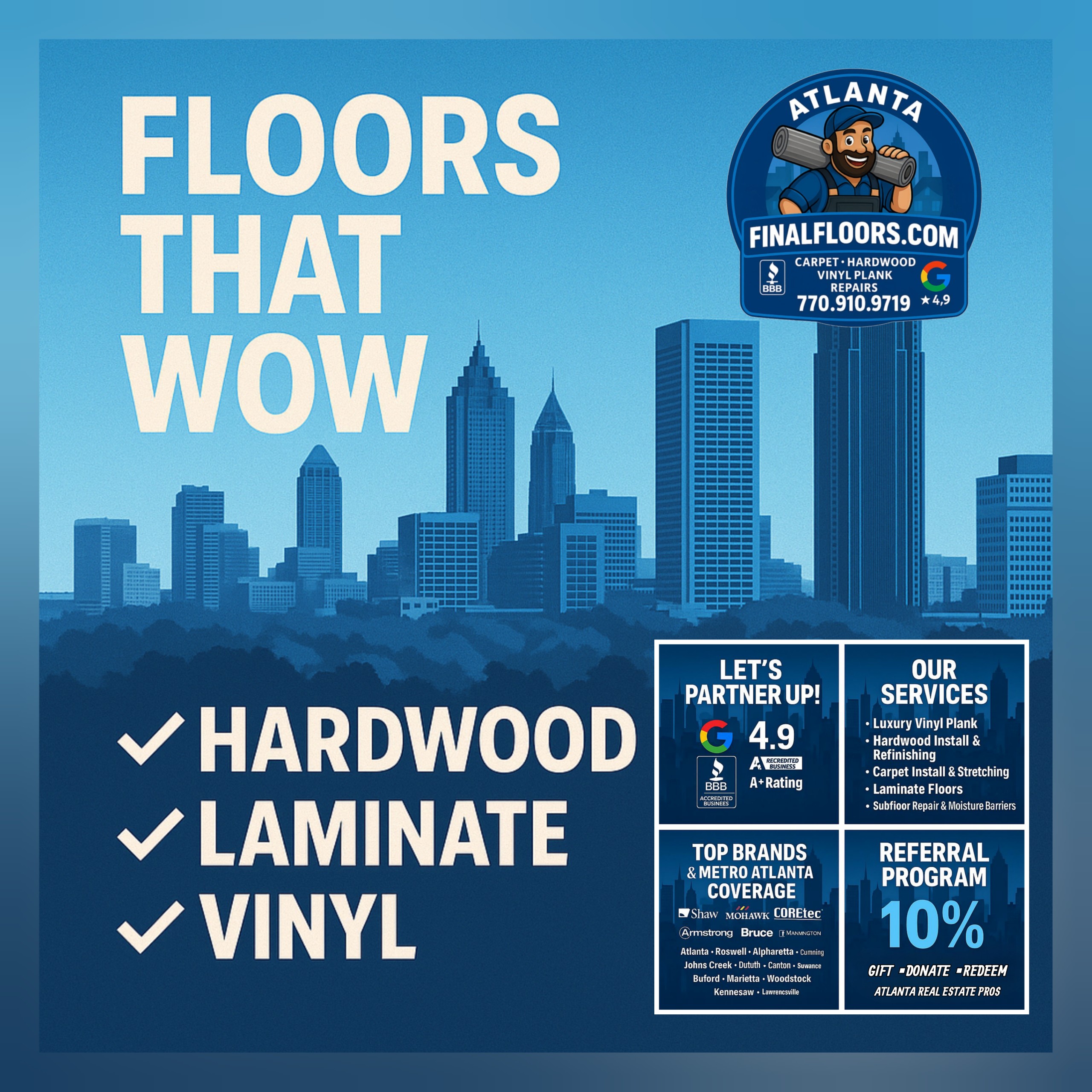 Final Floors ATL Blog | Metro Atlanta’s #1 flooring resource for expert hardwood refinishing, vinyl plank installs, carpet, laminate, subfloor repairs & insurance-approved putbacks. Serving Roswell, Alpharetta, Sandy Springs, Buckhead & surrounding areas. A+ BBB Accredited, 4.9⭐ Google Rated. Licensed in-house crews only. Call 770-910-9719 or visit FinalFloors.com for your FREE flooring estimate today! π‘✨ #Atlanta #FlooringAtlanta #AtlantaFlooring #AtlantaHomes